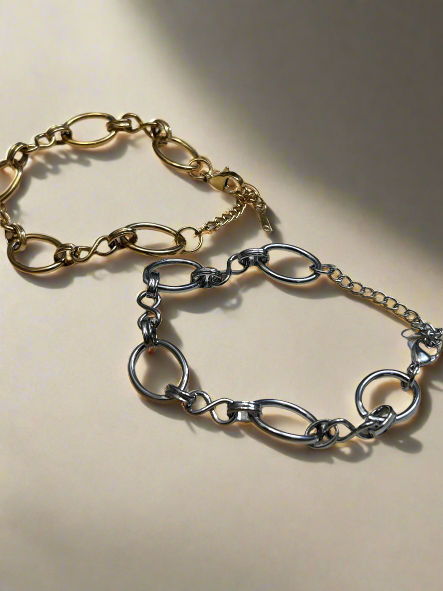 This artful interlocking chain bracelet is a wonderful choice to add a subtle flair to your wardrobe