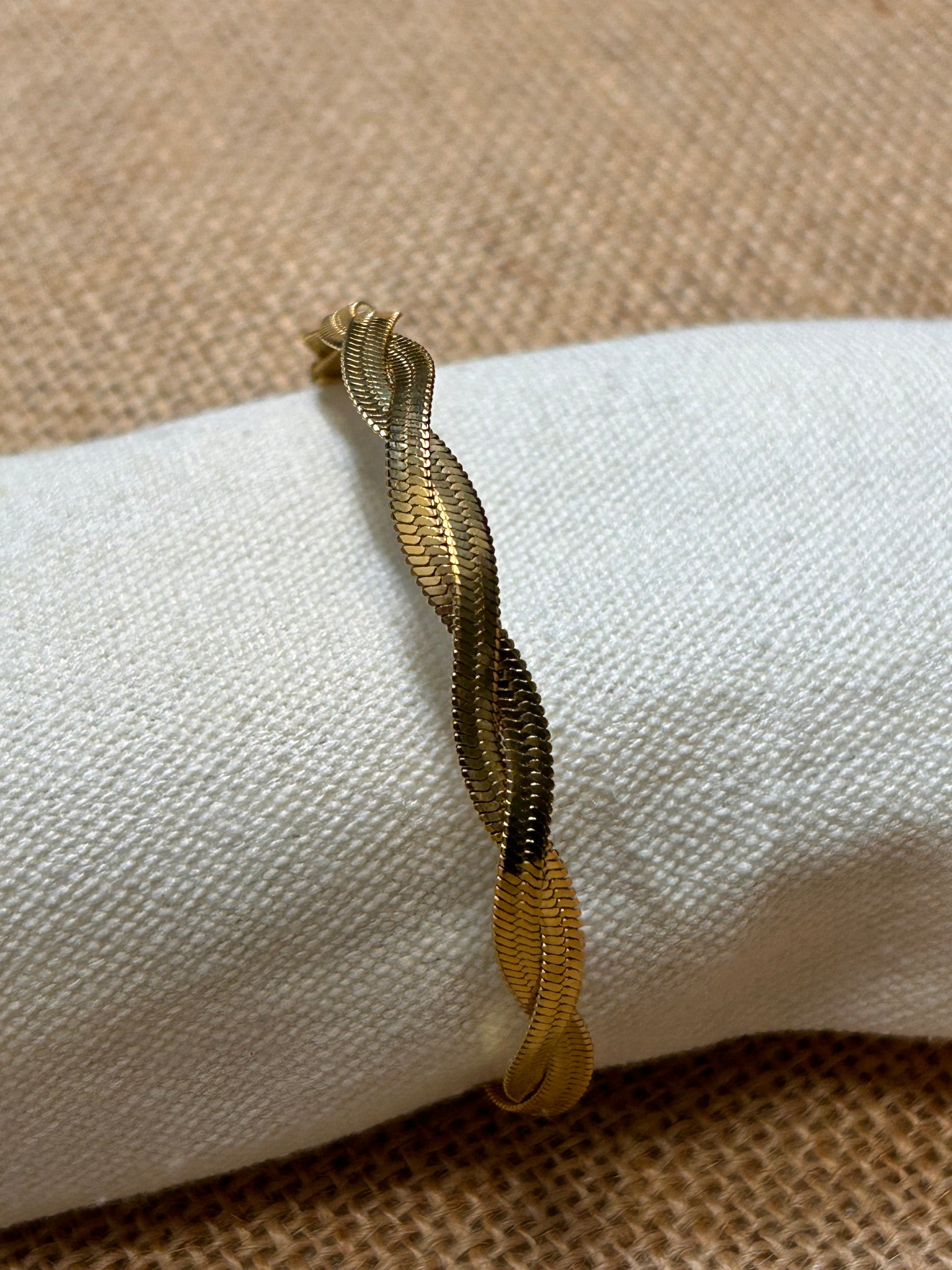 The gold lariat design of this bracelet adds timeless elegance. Pairs perfectly with the Roman Necklace